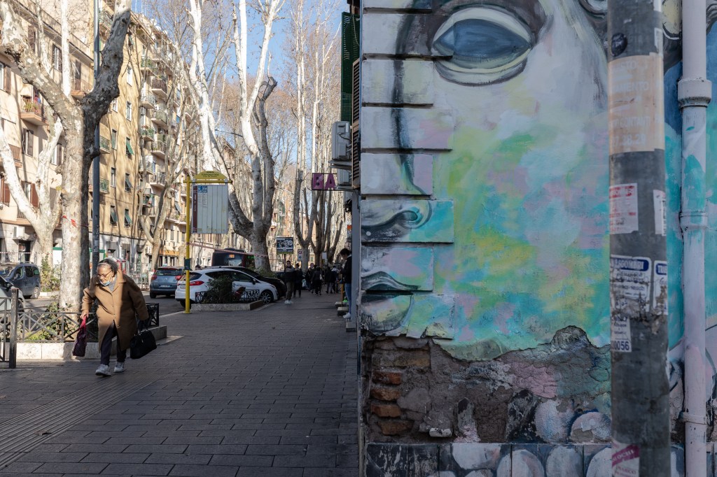 Palazzetti d’inizio Novecento si susseguono in file serrate, qualcuno invaso, con grazia, dalla street art. Abiti, volti e negozi multietnici, il vecchio tram giallo e il cinema Impero.