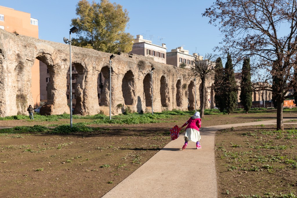 Con i buoni propositi del nuovo anno, mi regalo una passeggiata in un altro quartiere che non conosco. I resti dell’Acquedotto Alessandrino incorniciano un parco con cani a passeggio, signore che trascinano carrelli della spesa, bambine sui pattini.